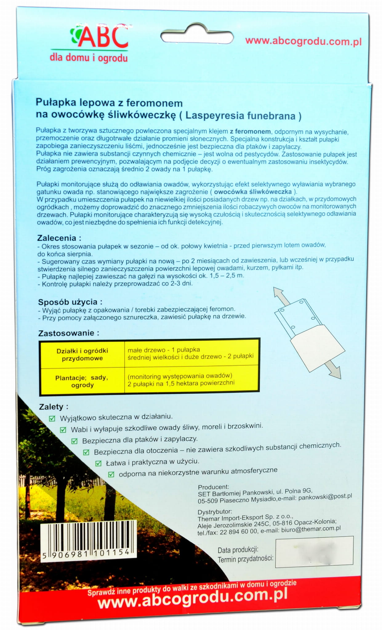 ABC Pułapka Lepowa z Feromonem na Owocówkę Śliwkóweczkę