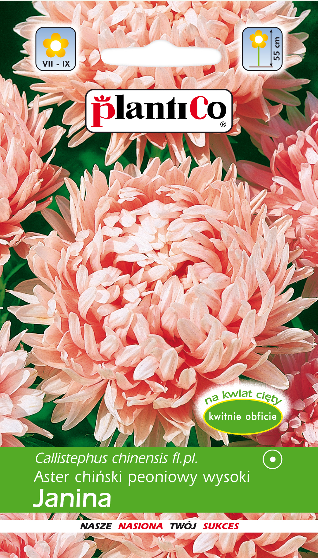 Aster chiński peoniowy wysoki Janina ŁOSOSIOWY nasiona marki PlantiCo