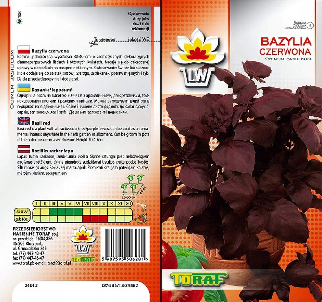 Bazylia Czerwona nasiona bazylii ziół Toraf