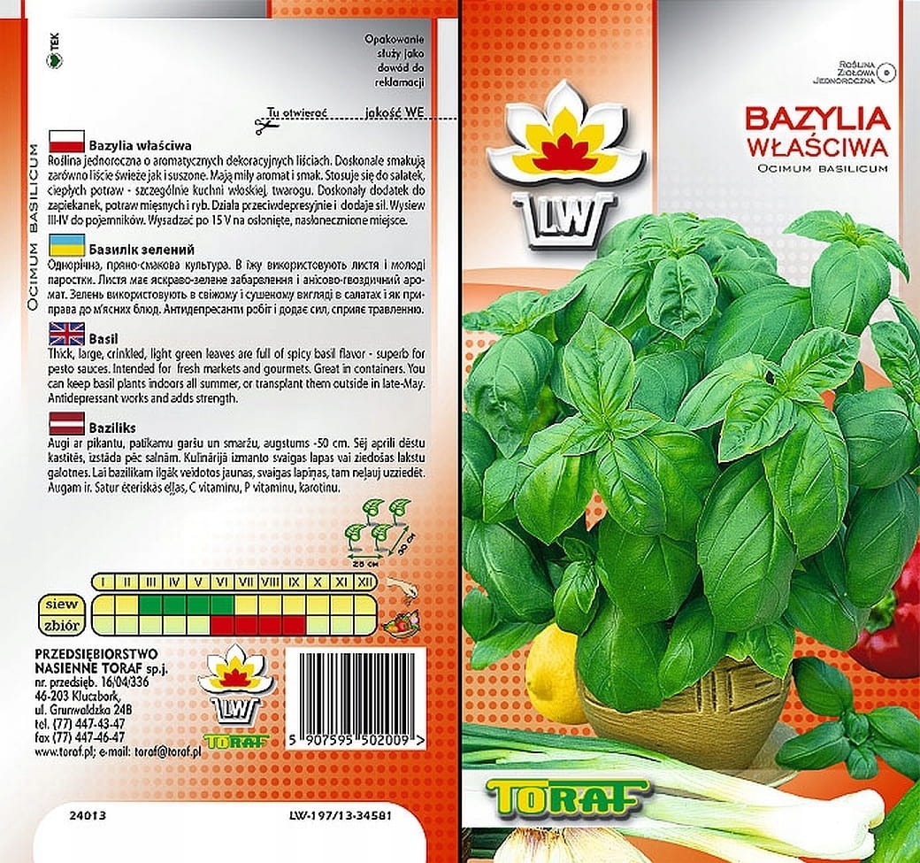 Bazylia Właściwa Zielona nasiona bazylii Toraf