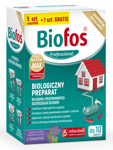 Biofos Professional Biologiczny preparat do szamb i przydomowych oczyszczalni saszetki 25g 5 saszetek + 1 gratis