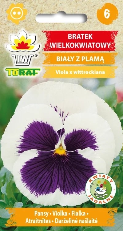 Bratek wielkokwiatowy biały z plamą fioletową nasiona marki Toraf