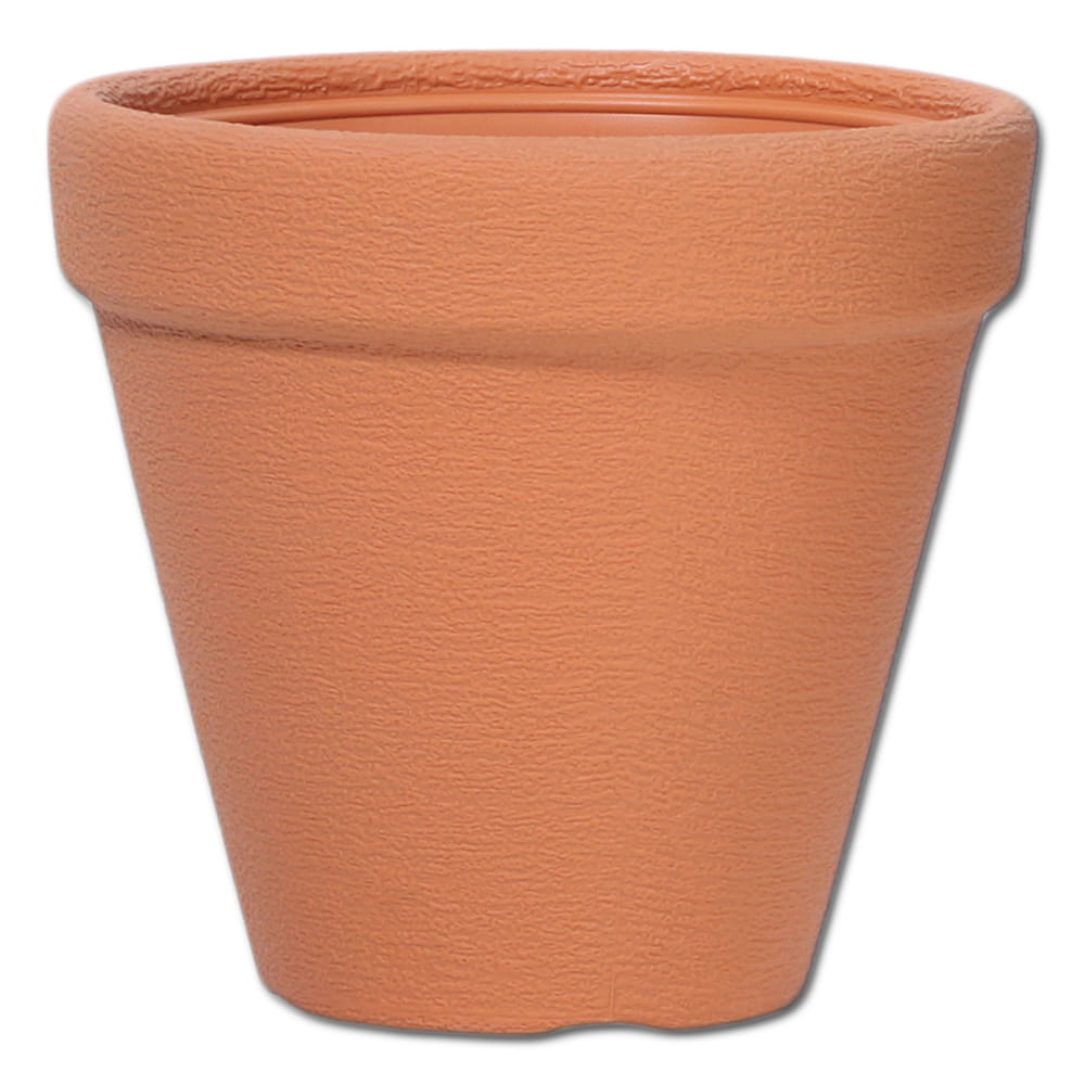 Plastikowa doniczka o klasycznym wzorze i kolorze, sprawdzi się na balkonie, tarasie czy w ogrodzie.