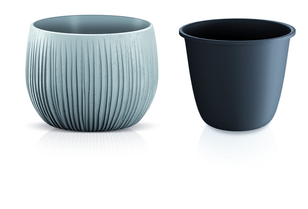 Plastikowa, strukturalna doniczka w kolorze szarości stanowiąca modną imitację betonu. Oryginalny model, który sprawdzi się na balkonie, tarasie, w ogrodzie czy pomieszczeniu.