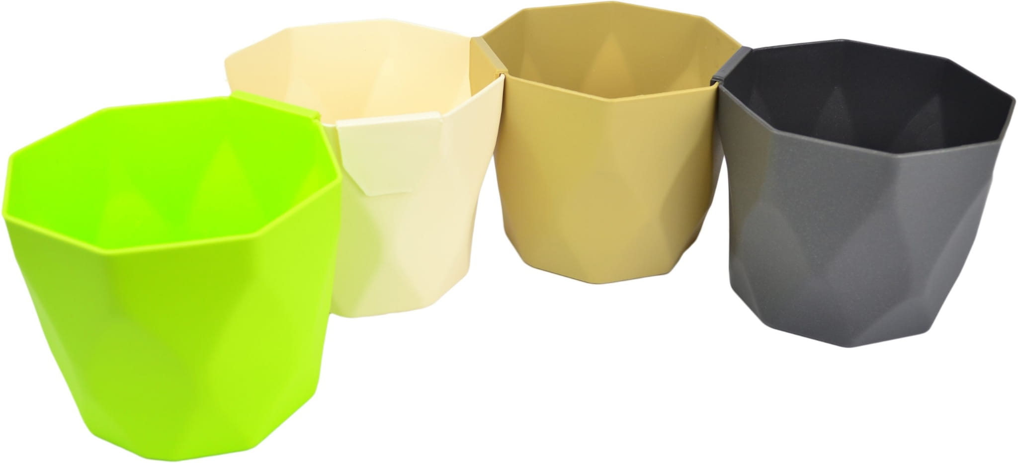 Doniczki z Rocka, można łączyć ze sobą za pomocą zintegrowanego "haczyka". Doniczki posiadają ciekawy przestrzenny wzór. Idealne na parapet, do ziół i małych kwiatów.