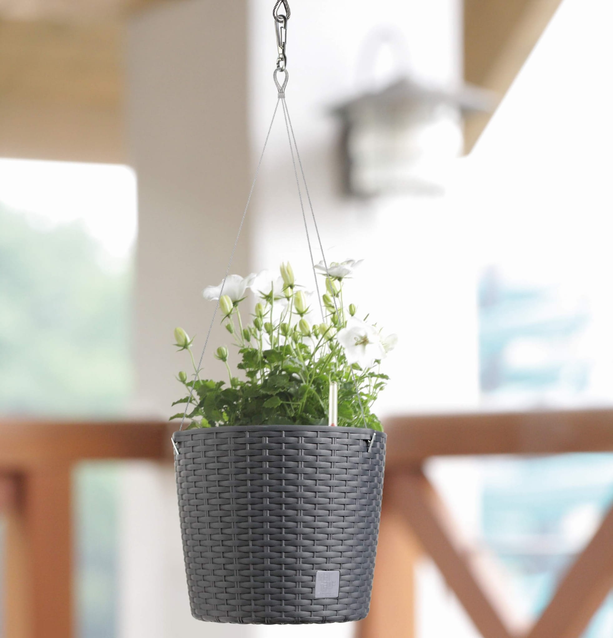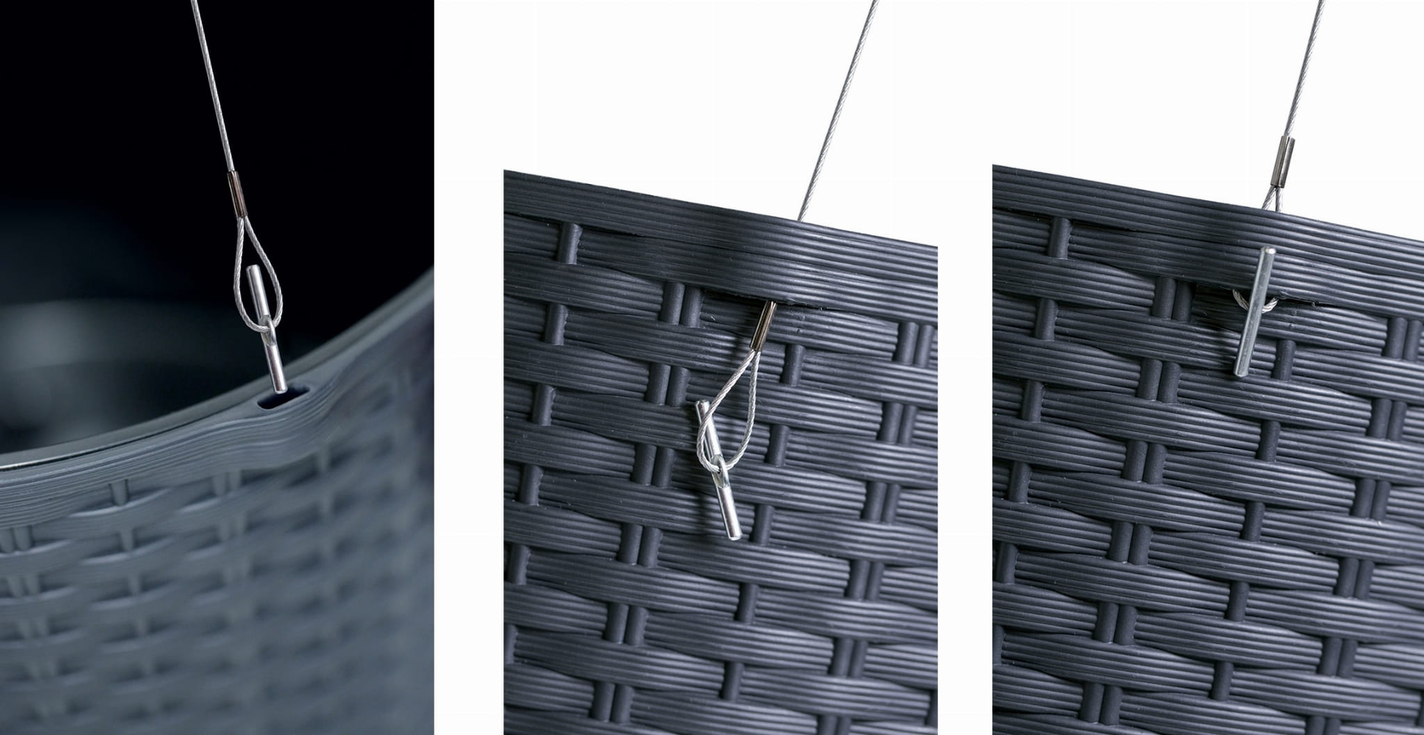 Wygodny montaż zawiesia, bez użycia narzędzi. Doniczka posiada ozdobny wzór również od spodu dzięki czemu doskonale prezentuje się wisząc.
