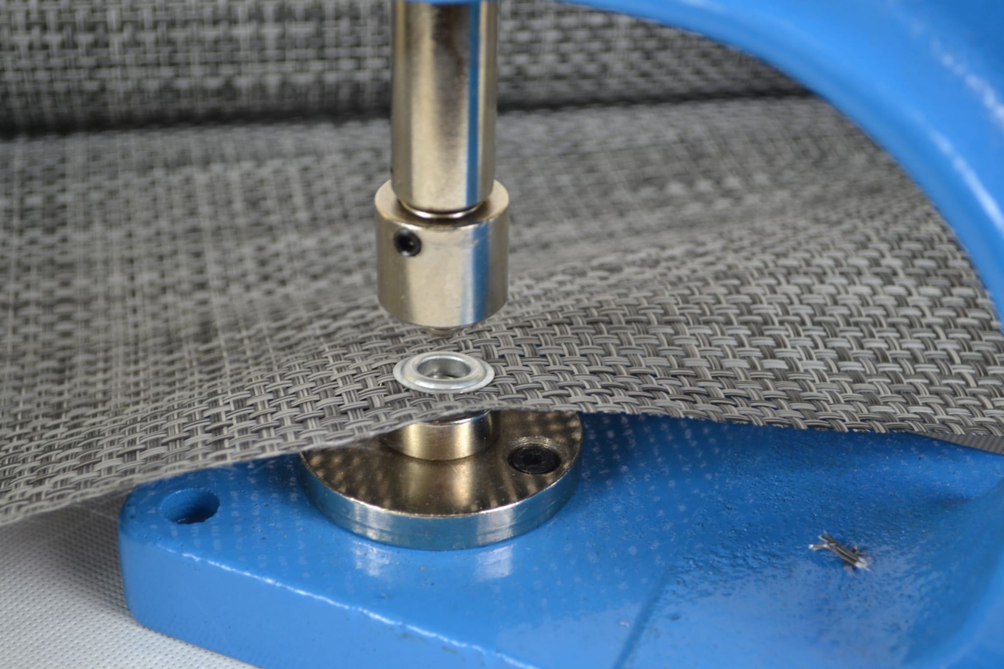 - zakucie oczek montażowych (oczko co 30 cm na każdej krawędzi)