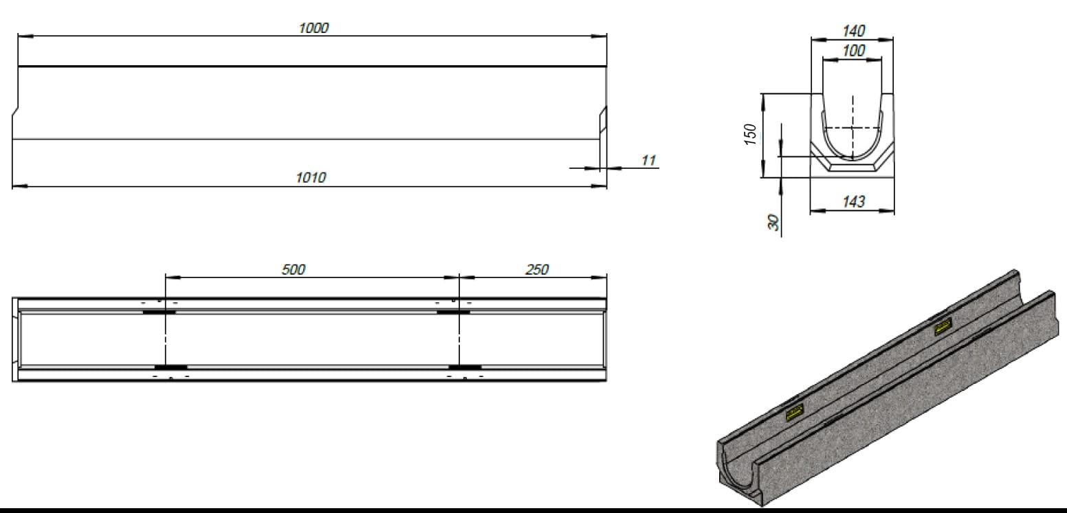 Korytka (kanały) betonowe z rusztem ze stali ocynkowanej do wykonywania odpływów wody (odwodnień zewnętrznych), dróg wewnętrznych, parkingów, ogrodów, garaży, na przydomowych podjazdach i wszystkich innych miejscach gdzie nie występuję ruch kołowy. Tradycyjna betonowa wytrzymała konstrukcja zapewnia trawłość, bezproblemowy montaż i eksploatację, a okucie z blachy wzmacnia krawędź i zabezpiecza przed wykruszeniem.
