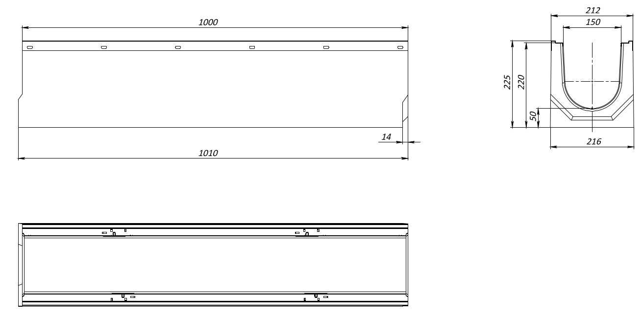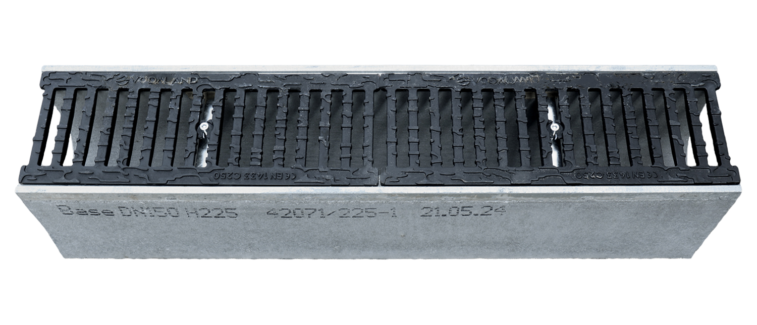 Kanał DN150 H225 C250 22,5x21,6x100[cm] korytko betonowe wzmacniane / ruszt żeliwny