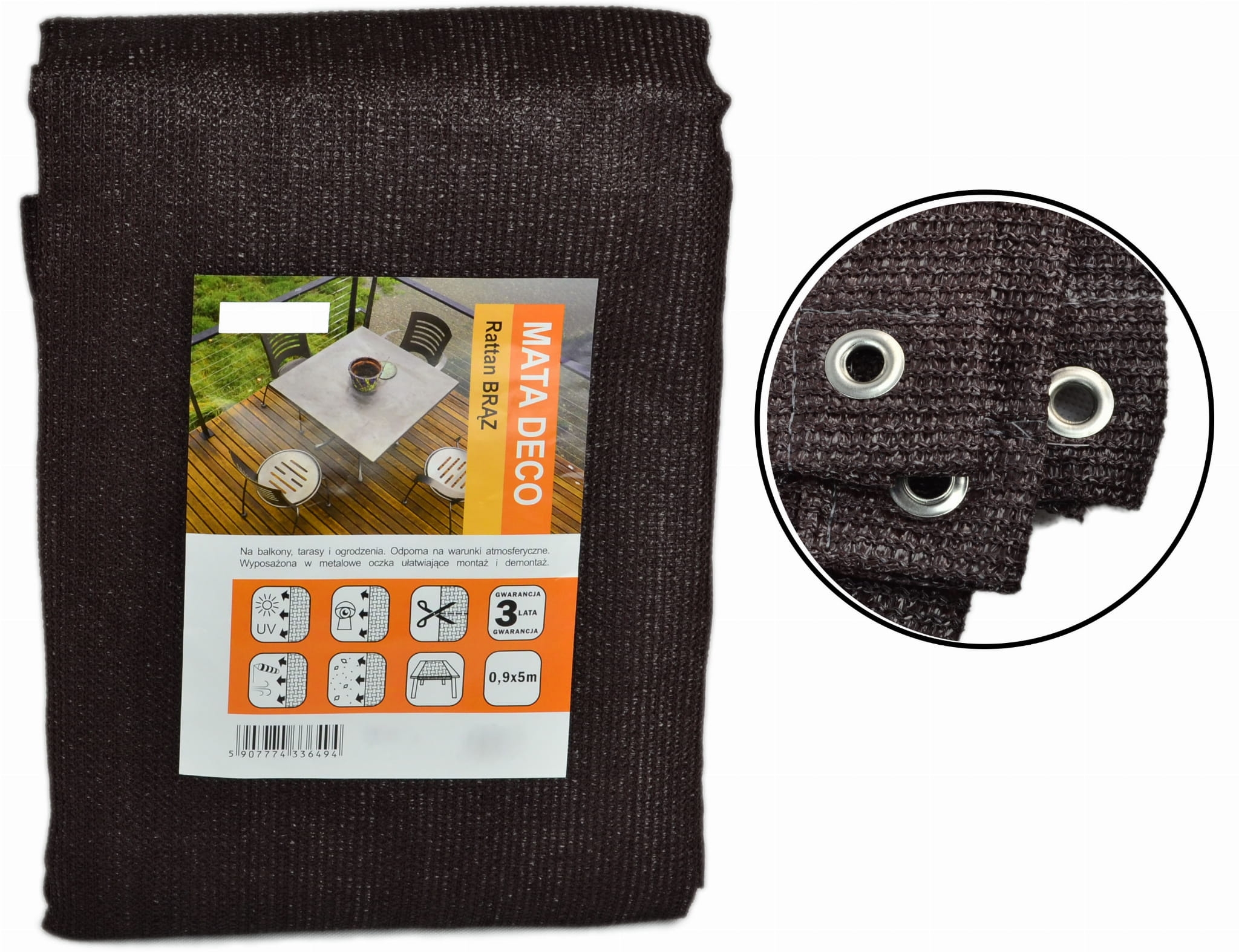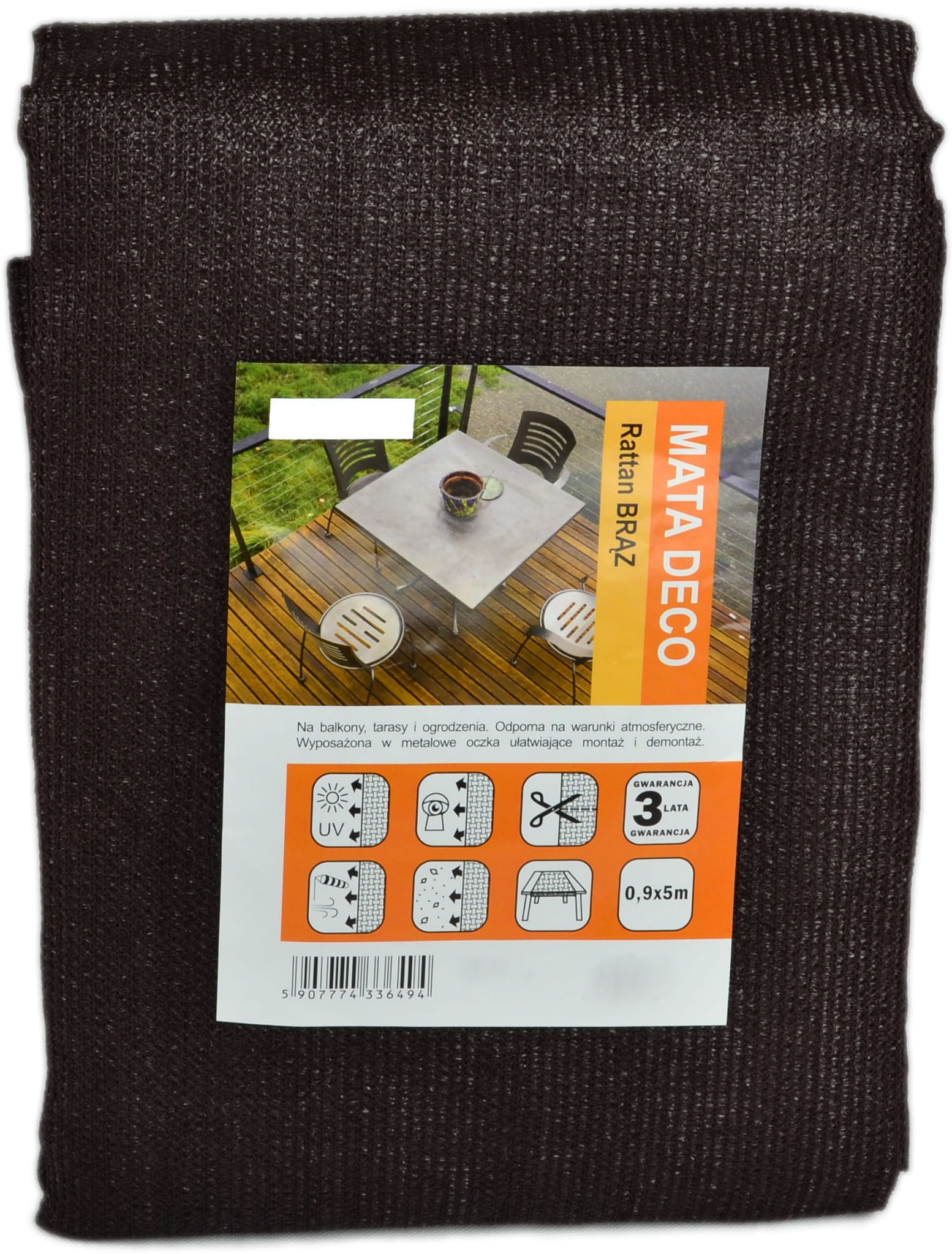 Mata Osłonowa Balkonowa DECO 0,9x5m BRĄZ