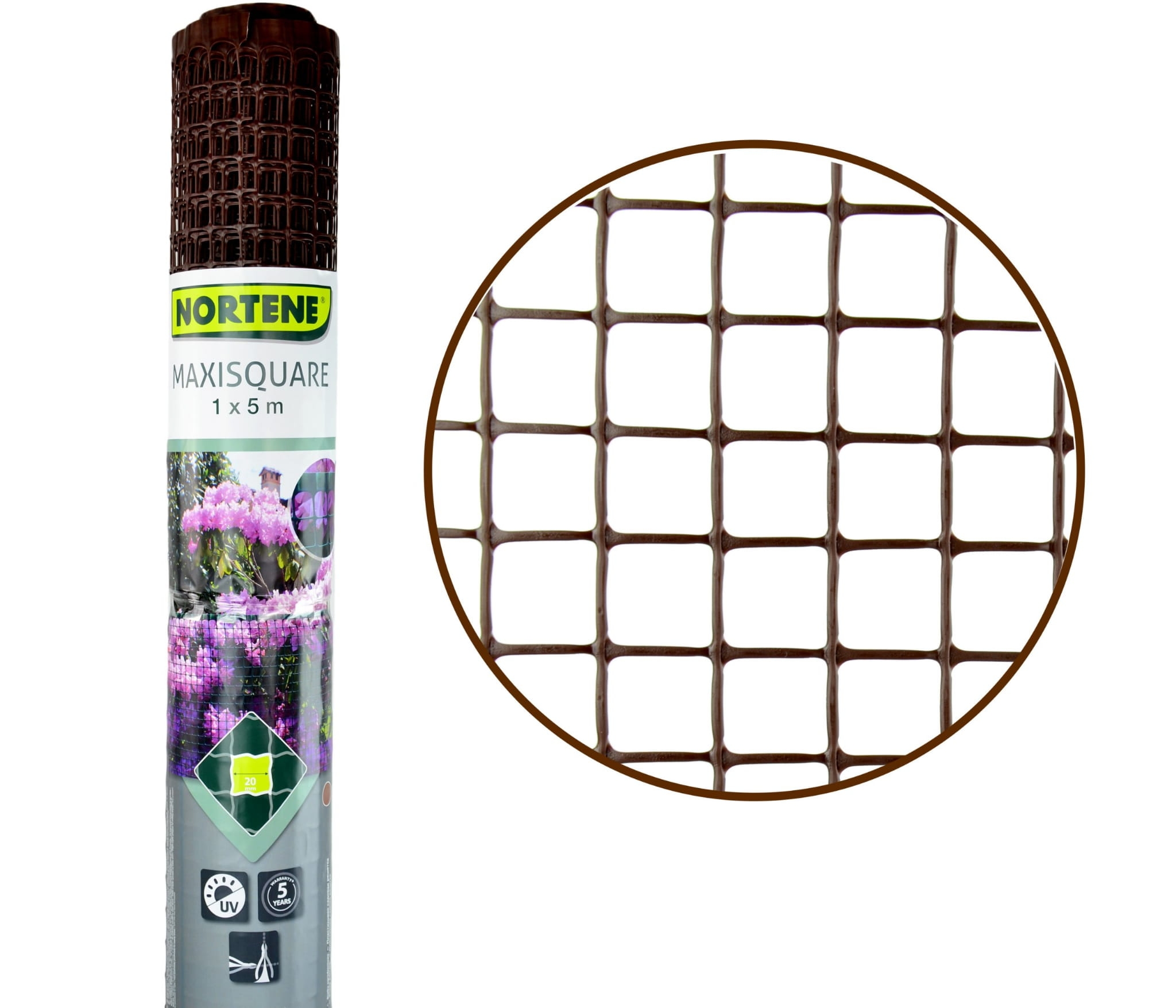 NORTENE Siatka MAXISQUARE 20mm Plastikowa BRĄZ 1x5m