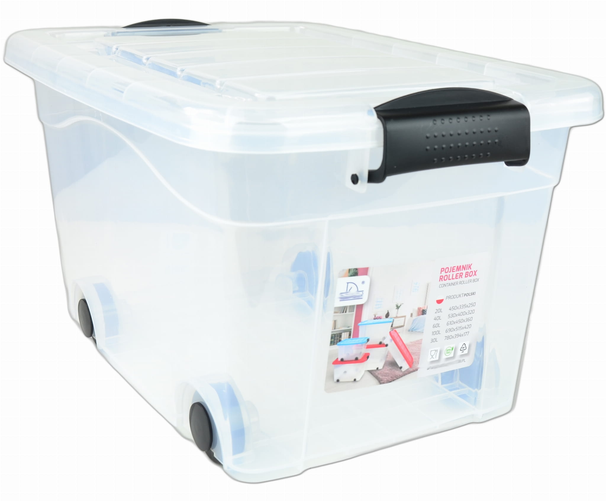 Uporządkuj swoją przestrzeń z zastosowaniem pojemników Roller BOX o różnej pojemności (od 20L do 100L).