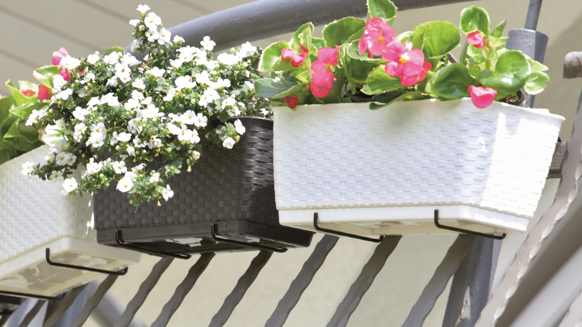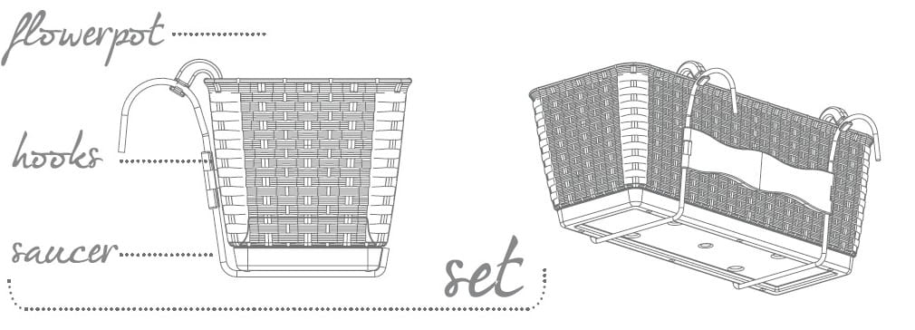 Skrzynki opcjonalnie wyposażone są w haki do samodzielnego montażu na barierce. Ponadto w zestawie specjalna wkładka zapewniająca roślinom stały poziom nawodnienia i w efekcie oszczędnoś wody poprzez gromadzenie jej nadmiaru w dnie skrzynki.