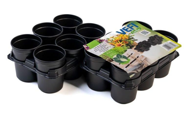 VEFI Doniczki produkcyjne okrągłe 6cm 12szt + 2 tace (7536)