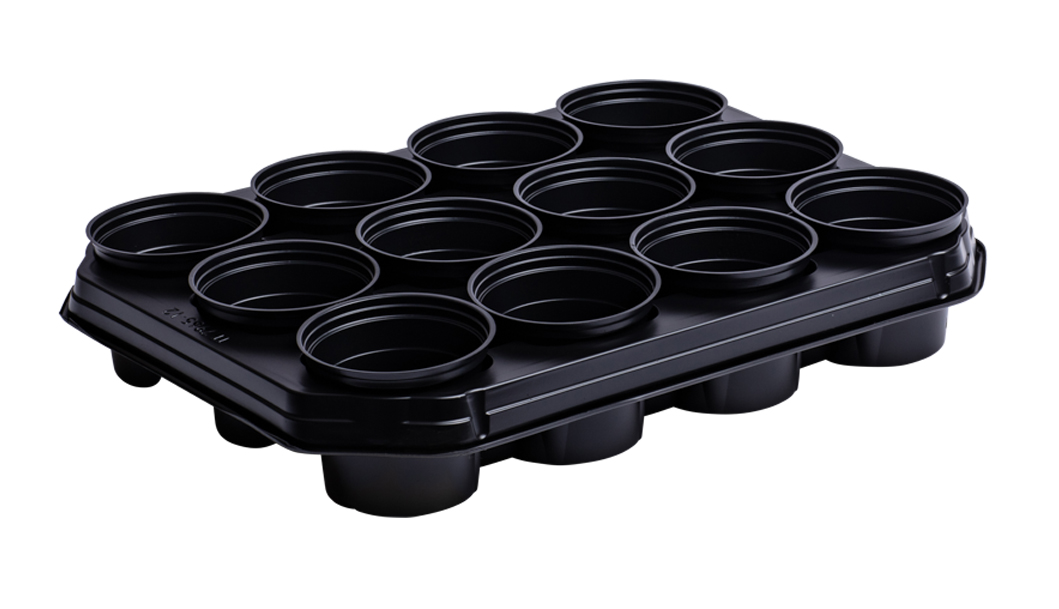 VEFI Doniczki produkcyjne okrągłe niskie 8cm 12szt + taca (800570)