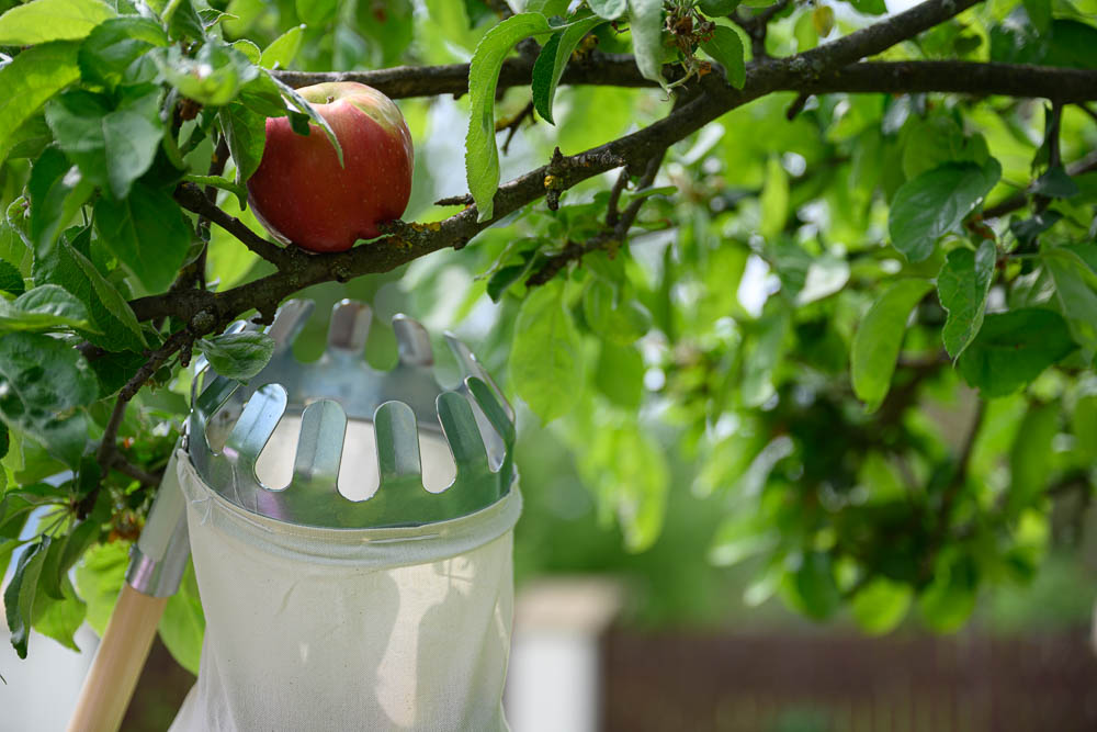 Wyposażony w specjalny worek, który ułatwia zrywanie owoców, nie uszkadzając ich przy zbiorach.